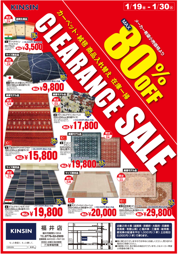 【開催終了】カーペット・絨毯 クリアランスセール 福井店