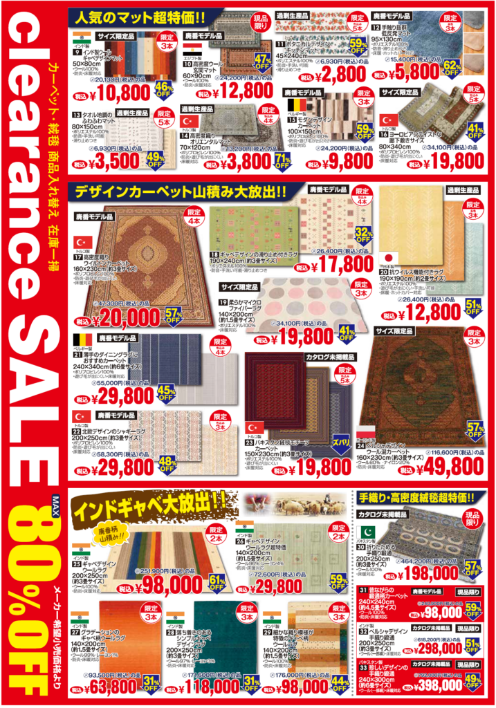 カーペット&絨毯 商品入れ替え 在庫一掃 クリアランスセール開催!