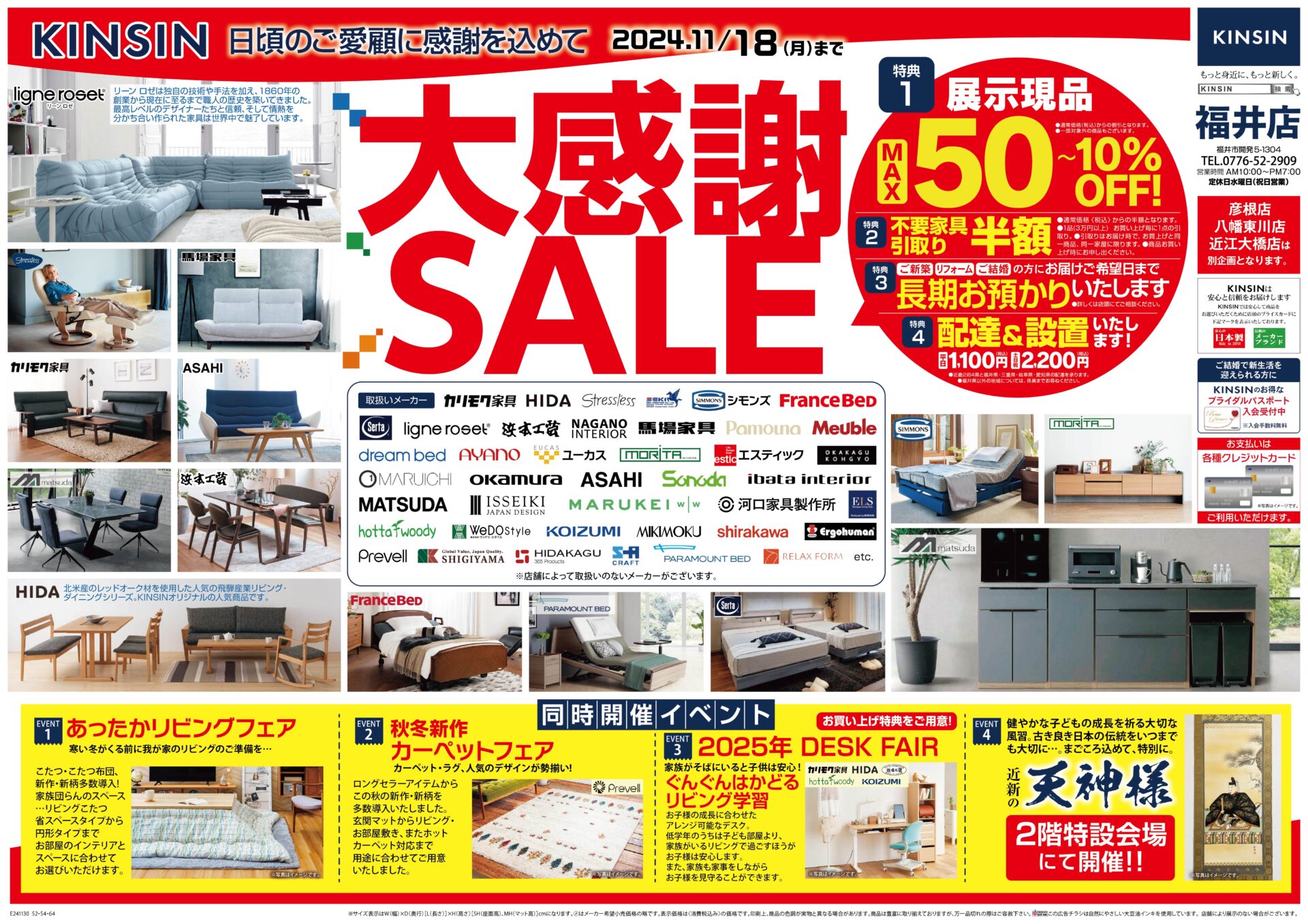 福井店にて、年に一度の特別企画価「2024年の大感謝セール」を2024年11月18日(月)まで開催いたします。期間限定の特典と同時開催のイベントが満載!皆様のご来店を心よりお待ち申し上げます。