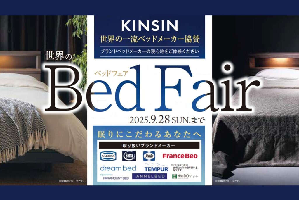 福井店にて「世界のベッドフェア」を2025年9月19日(金)から28日(日)まで開催致します。眠りにこだわるあなたへ、世界の一流ベッドの寝心地をご体感いただけます。また、期間中限定でお買上げ特典もご用意いたします。是非この機会のご来店をお待ち申し上げます。