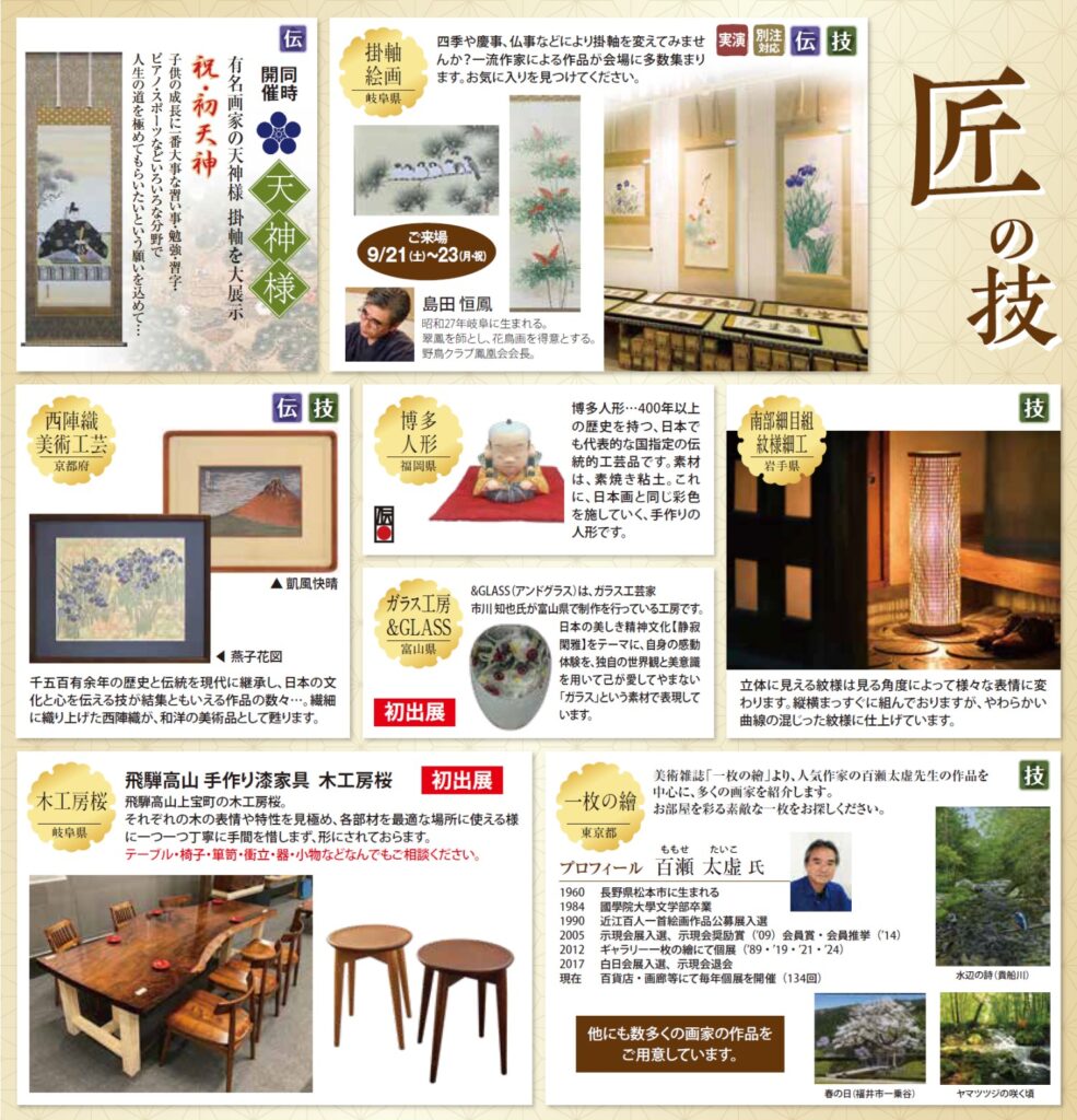 匠の技を全国各地より取り揃えて開催いたします