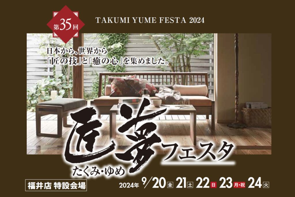 第35回匠夢フェスタを福井店特設会場にて9月20日(金)から24日(火)まで開催いたします。